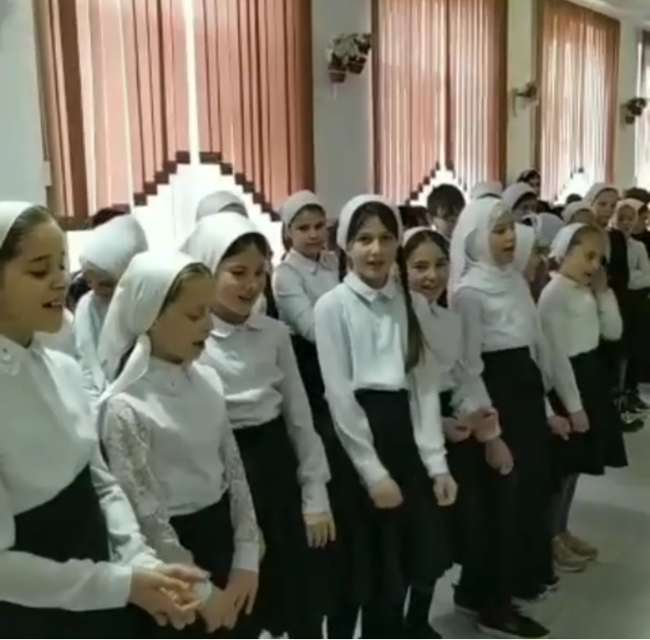 Учебная неделя в МБОУ "СОШ 1 с.Мартан-Чу" началась с исполнения гимнов РФ и ЧР.