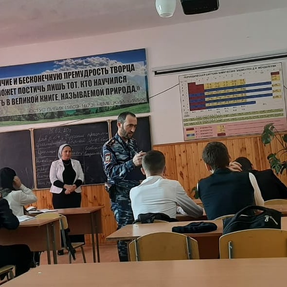Инспектор ПДН ОП н.п. Гой-Чу ОМВД России по Урус-Мартановскому району капитан полиции Кайсаров М.Л. провел профилактические беседы с обучающимися 7-9 классов.