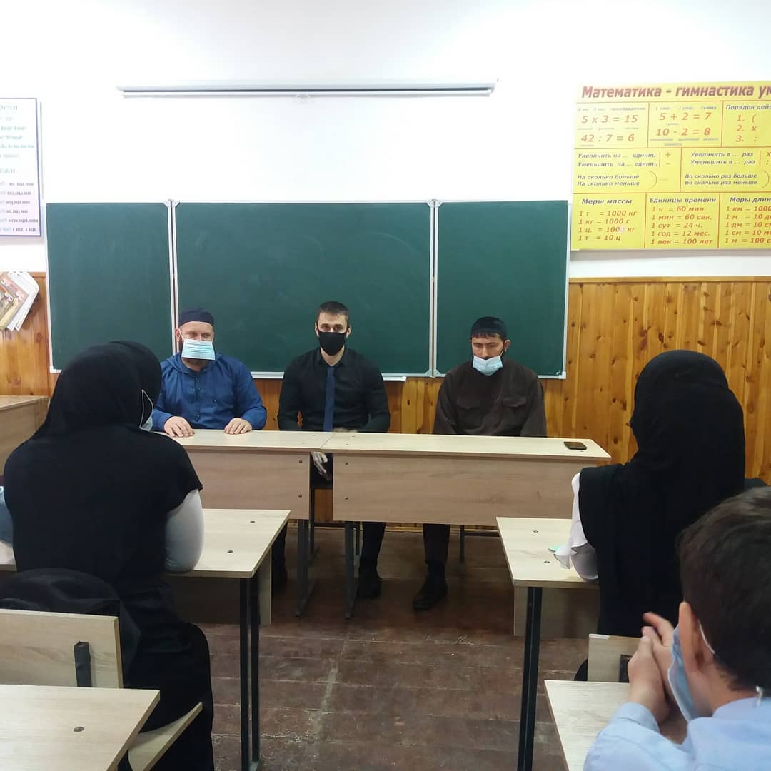 Имам села Мартан-Чу Даутмерзаев Б.Х., педагог по ДНВ Турлуев А.Х., провели беседы с обучающимися 9-классов на тему духовно-нравственное воспитание подрастающего поколения.
