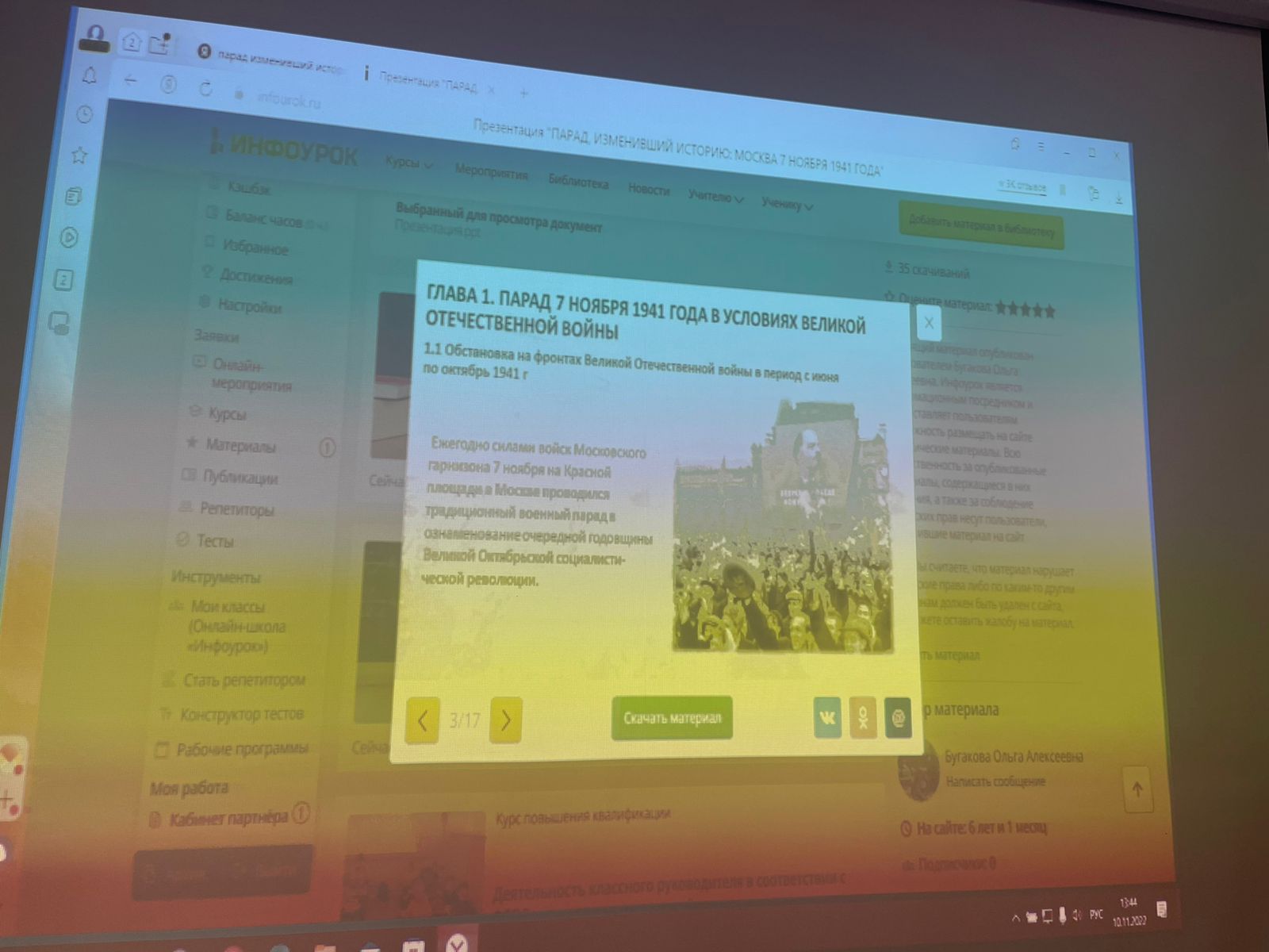 Сегодня был проведен открытый урок на тему "Парад, изменивший историю, 7 ноября 1941 года".
