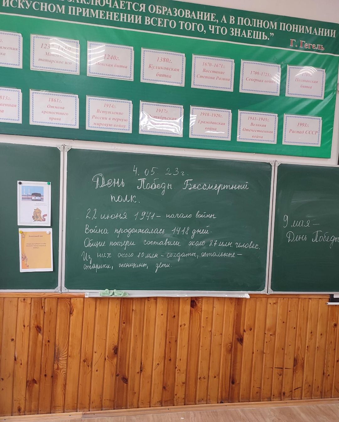 04.05.2023Во всех школах страны 4 мая 2023 года началось с торжественной линейки, посвященной 78-й годовщине со Дня Победы в Великой Отечественной войне. Классные руководители говорили о героизме, проявляемом людьми во время Великой Отечественной войны, говорили про уважительное отношение к таким ценностям, как долг и служение Отечеству, патриотизм; говорили о сохранении исторической памяти и связи поколений. Ребята вместе с педагогами обсудили историю появления гражданско-патриотического движения «Бессмертный полк» и его роли в сохранении памяти участников Великой Отечественной войны.