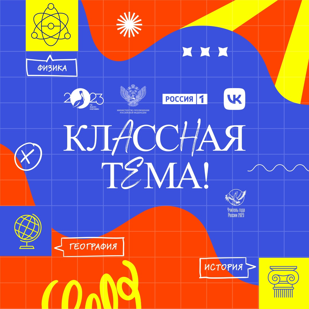 17.05.2023Учителя из всех российских регионов могут подать заявки на участие в новом сезоне проекта «Классная тема!», который реализуется по поручению Президента Российской Федерации Владимира Путина. Организаторы проекта – Минпросвещения России, телеканал «Россия» при информационной поддержке компании VK.