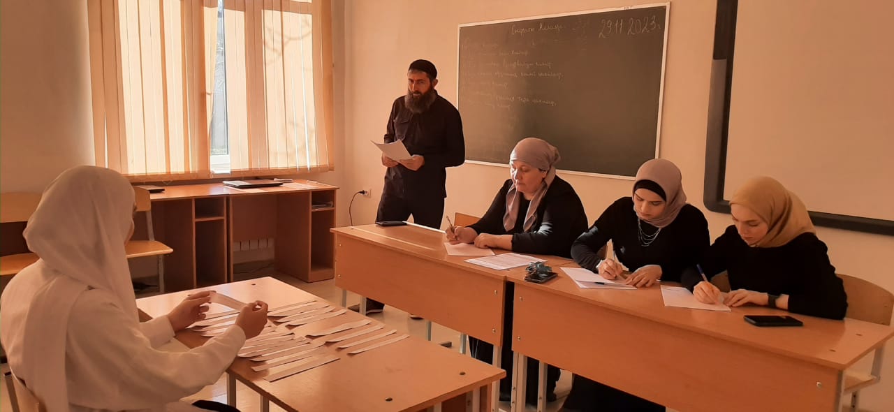 29.11.2023В МБОУ "СОШ №1 с. Мартан-Чу" проведен конкурс по "Фикъхе" среди обучающихся 6-9 классов. Кокурс проводился с целью приобщения обучающихся к истинному знанию Ислама, а также с целью повышения уровня знаний священного Корана. 1 место заняла ученица 8 Б класса Асхабова Амина, 2 место занял ученик 8 А класса Газуев Эдалсолт, 3 место заняла ученица 8 Б класса Эльснукаева Танзила.