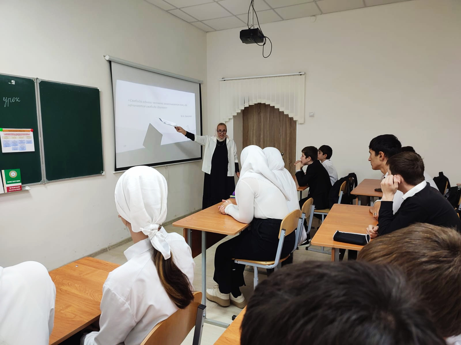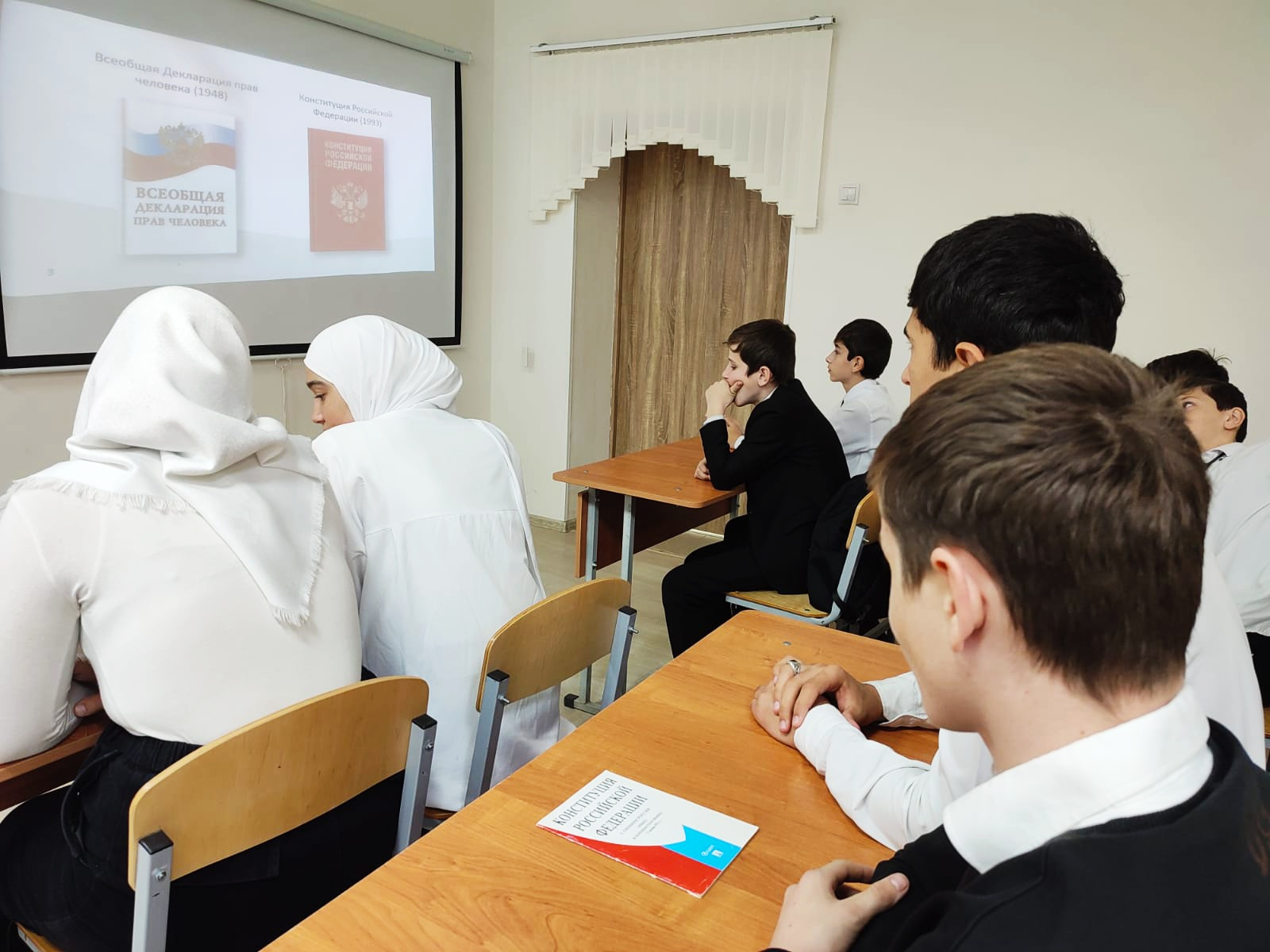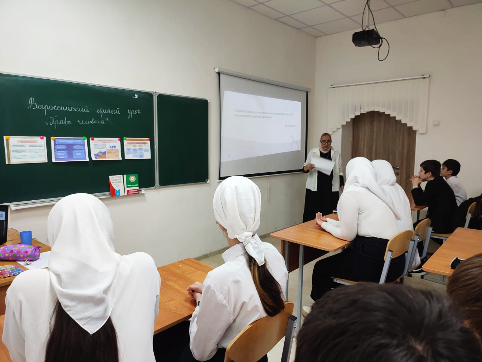 07.12.2023В преддверии Дня прав человека, который традиционно отмечается 10 декабря в МБОУ "СОШ №1 с. Мартан-Чу" учитель обществознания Закаева А.А. провела единый урок ко Дню права в 8 Б классе.