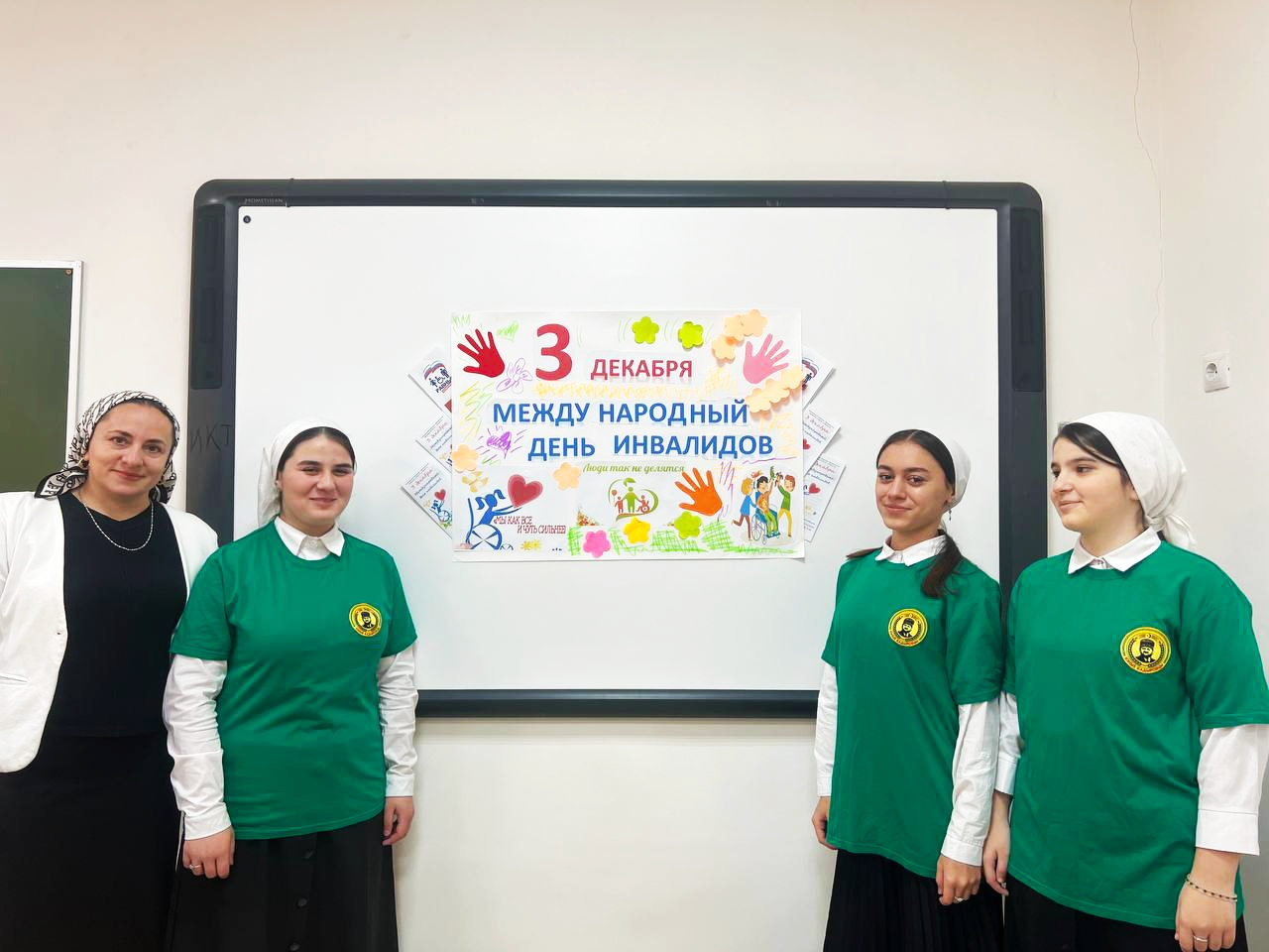 04.12.2023Международный день инвалидов в 2023 году отмечается 3 декабря. Эту дату назвать праздником трудно, ведь инвалидность не является поводом для радости. Цель праздника — обращение внимания населения на проблемы лиц, утративших трудоспособность, защита их прав, свобод и достоинства, возможность их участия в общественной жизни. В МБОУ "СОШ №1 с. Мартан-Чу" заместитель директора по ВР Закаева М.А. и психолог Сугаипова К.М. с участием участников движения "Юные кадыровцы" провели ряд меропряитий, посвященных этой дате.