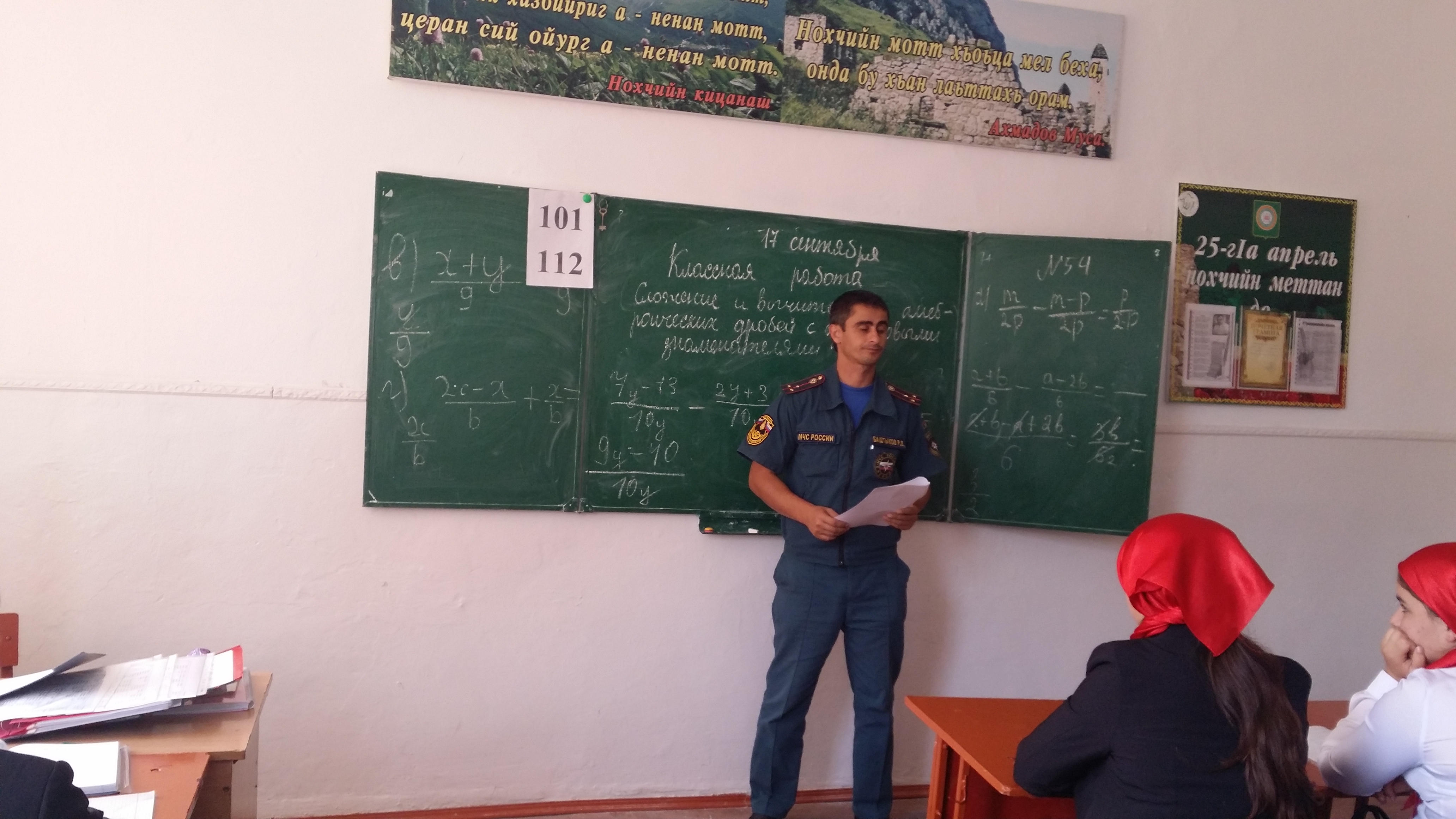 28.09.2015В средней общеобразовательной школе села Мартан-Чу сотрудники отделения МЧС провели урок по пожарной безопасности.